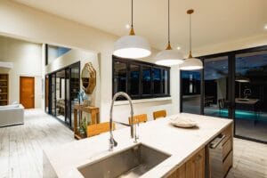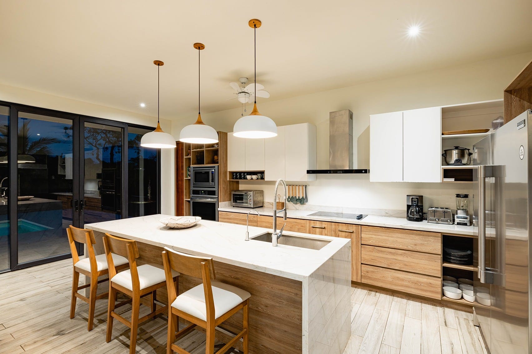 ● Expansive glass sliding doors that create seamless indoor-outdoor flow