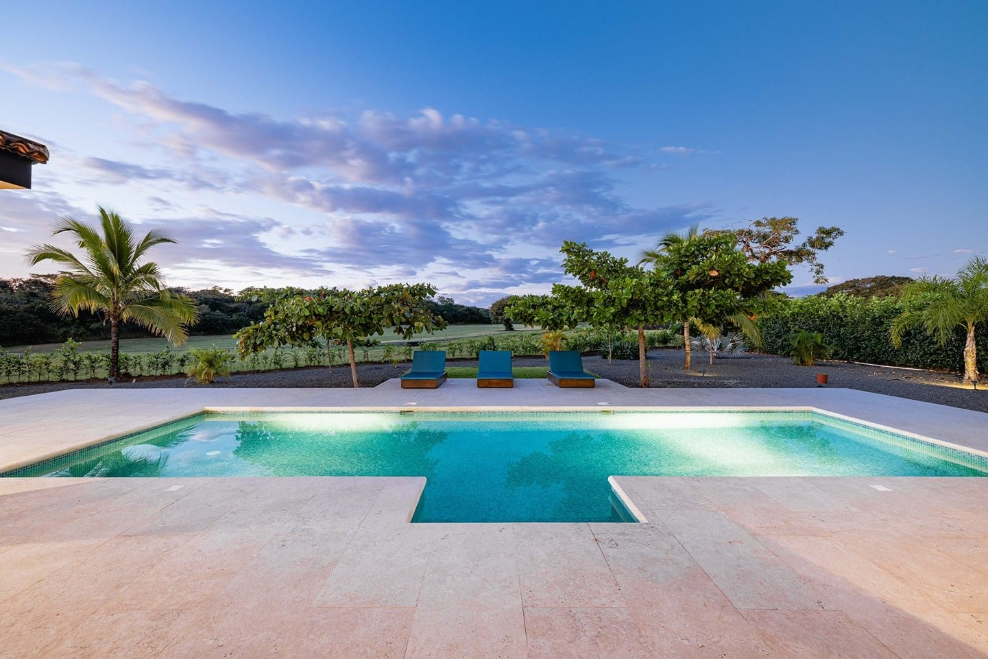 Enjoy evenings surrounded by lush tropical gardens and ambient lighting that transforms the